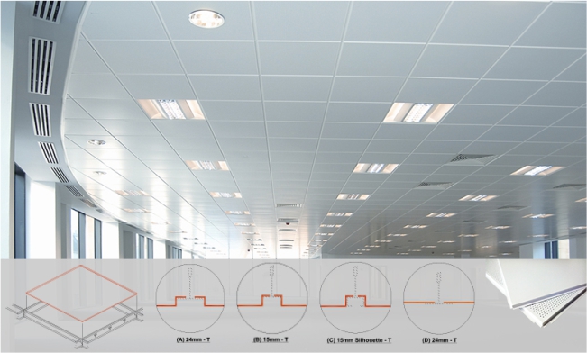 Excel Sales make Lay-In Tiles 600 * 600 mm are made from 0.6 / 0.7 mm TCT Aluminum alloy (AA) 8011 powder coated on continuous paint line with a flange on each end, which lay on the exposed “T” grid. The Tiles can be laid and easily removed without the aid of special tools.