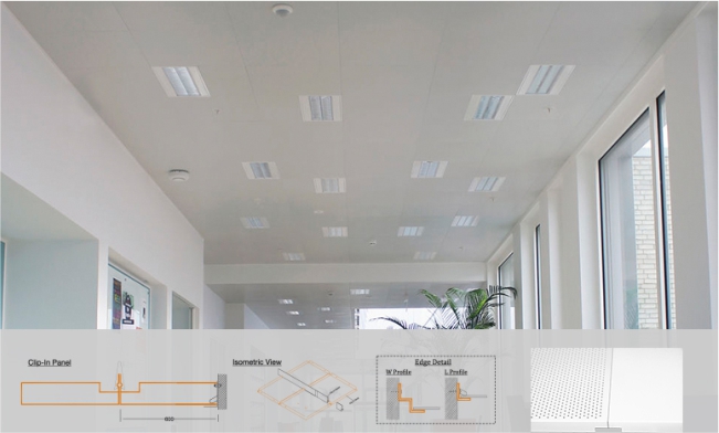 Clip-In tiles are ideal for use in areas requiring a high degree of Cleanliness such as Laboratories, Hospitals & Operation Theatres. A totally air & dust tight ceiling can be achieved with a Silicon Sealant applied between the joints of the tiles.