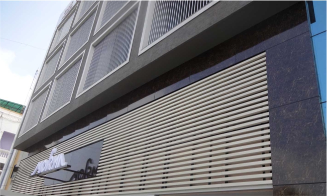 Excel Sales make panels, 25 * 50 * 25 mm & 0.71 mm TCT Aluminium alloy like AA-8011. Panel length is up to approx. 3 mtr. Panels shall be powder coated on visible surface with special Exterior Grade powder to enhance property of Fadeness Resistivity.